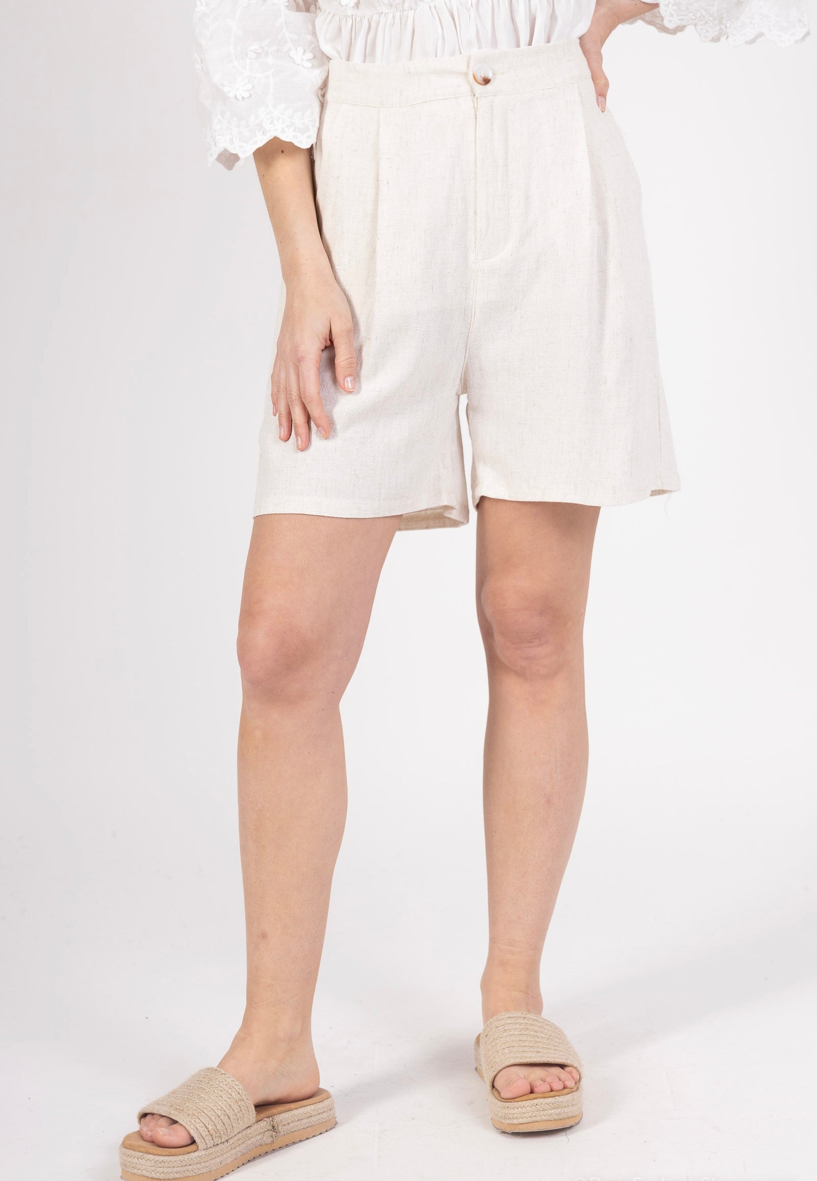 (7€ la pièce) LOT DE 4 BERMUDA PREMIUM MIX LIN ET COTON - COUPE DROITE À PINCES 25VET10
