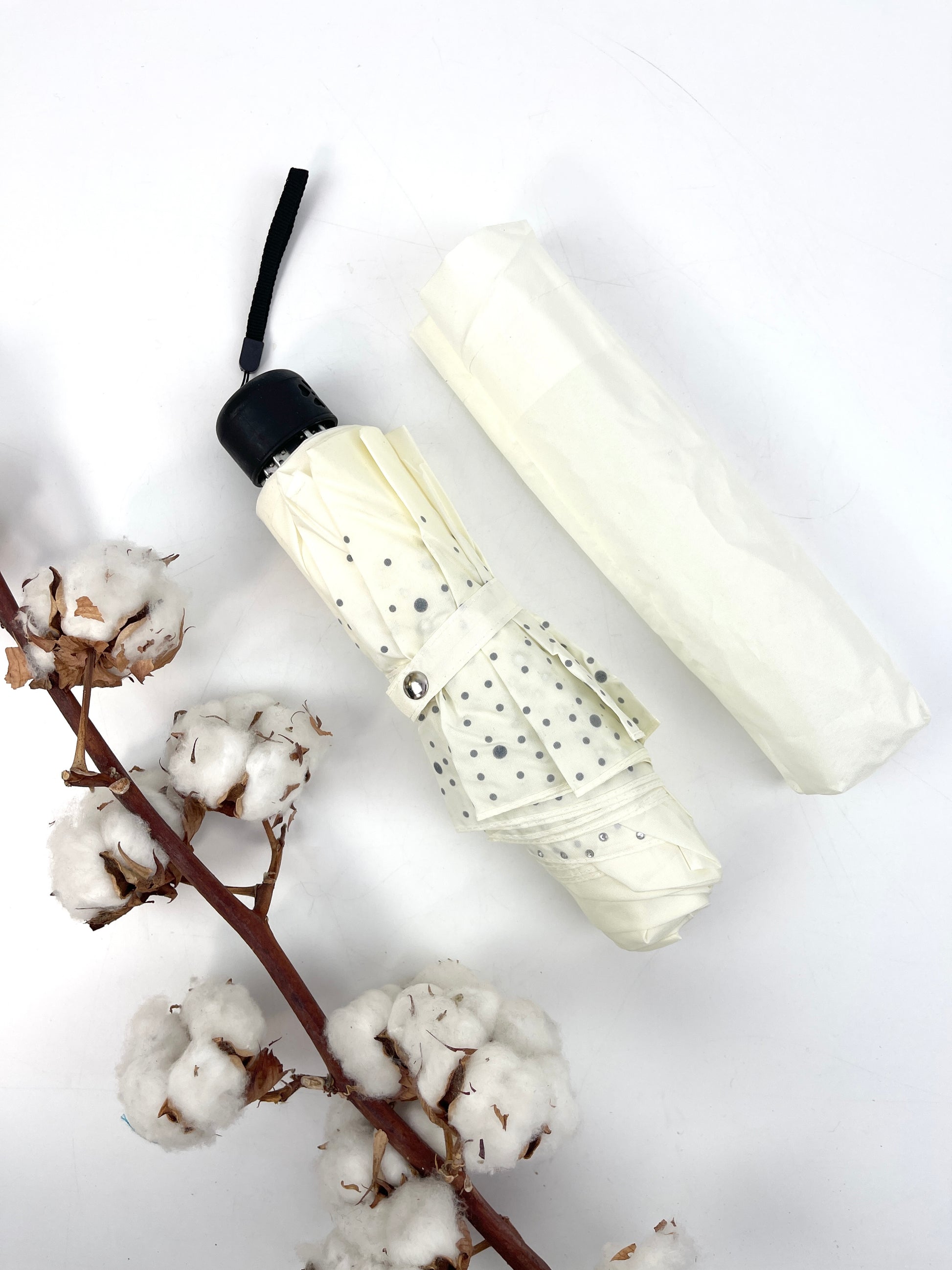 Assortment of 12 pieces. Combine functionality and elegance with this automatic folding umbrella in plain nylon, enhanced by a discreet yet refined touch of rhinestones.