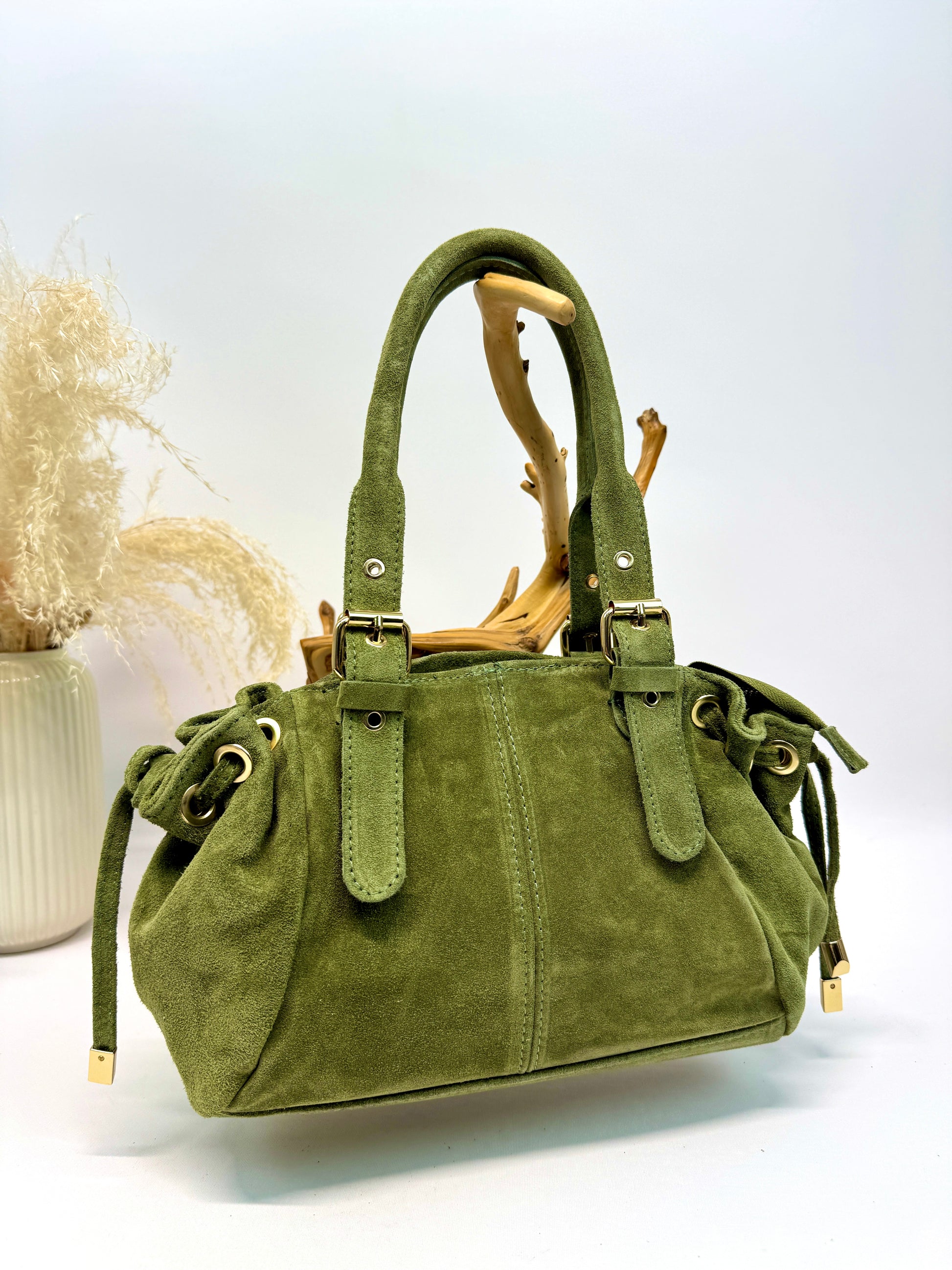SAC EN CUIR EN CROUTE DE SUÈDE POCHE ZIPPÉES COLORIS TERRE D'HORIZON