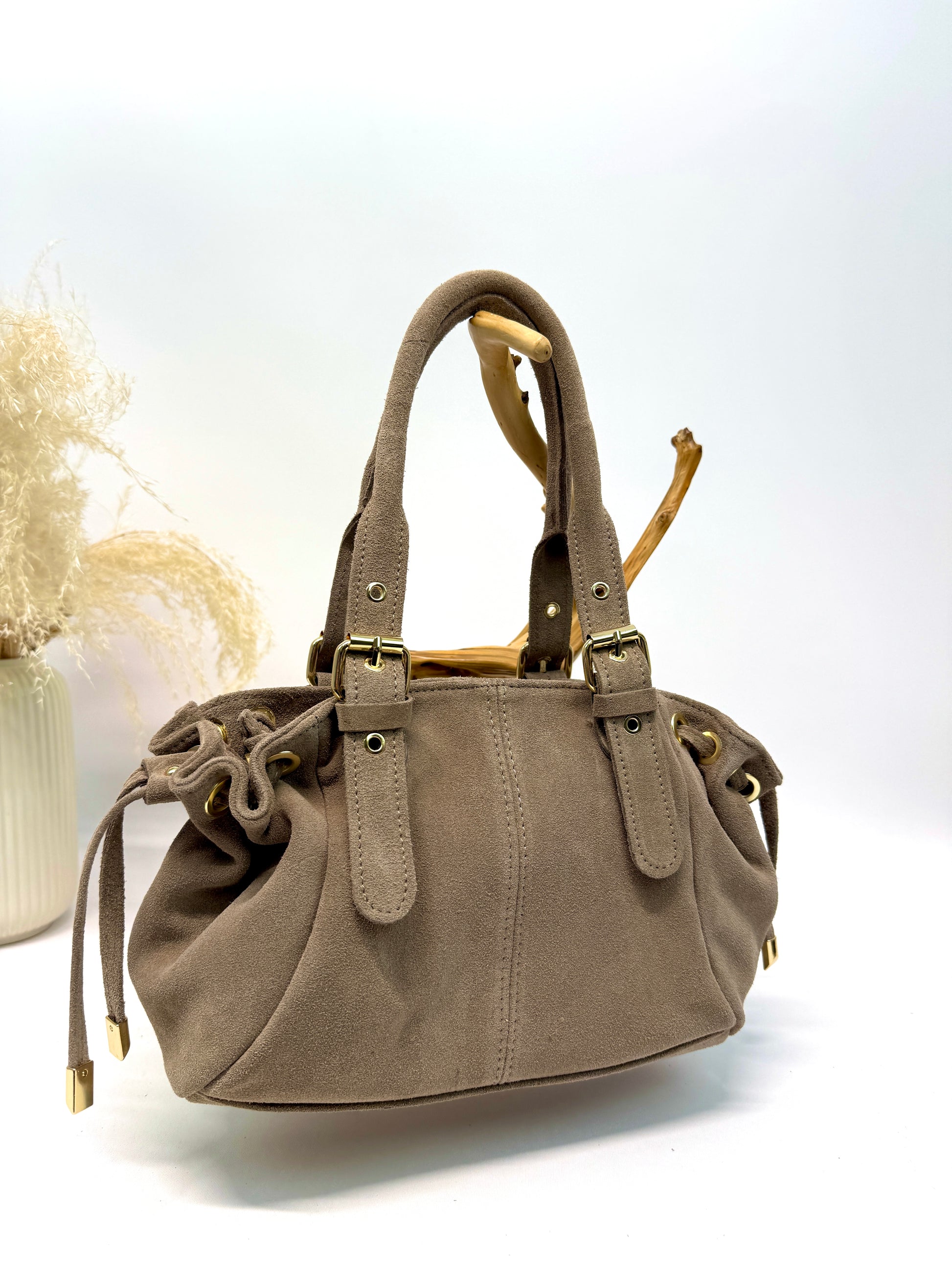 Découvrez l'équilibre idéal entre la souplesse d'un sac bourse et la structure d'un sac à main classique. Ce modèle en croûte de cuir véritable (suède) se distingue par sa teinte taupe universelle, une couleur sourde et sophistiquée qui s'adapte à toutes les saisons et toutes les garde-robes.