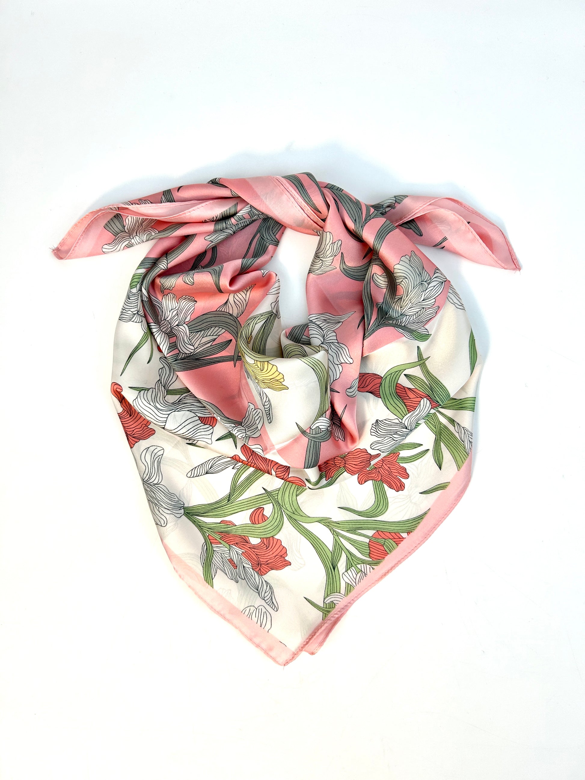 Élégance et fraîcheur s'unissent dans ce foulard carré en polyester. Confectionné dans un polyester de très haute qualité, il offre un toucher doux et agréable, tout en conservant une brillance subtile et une excellente durabilité.
