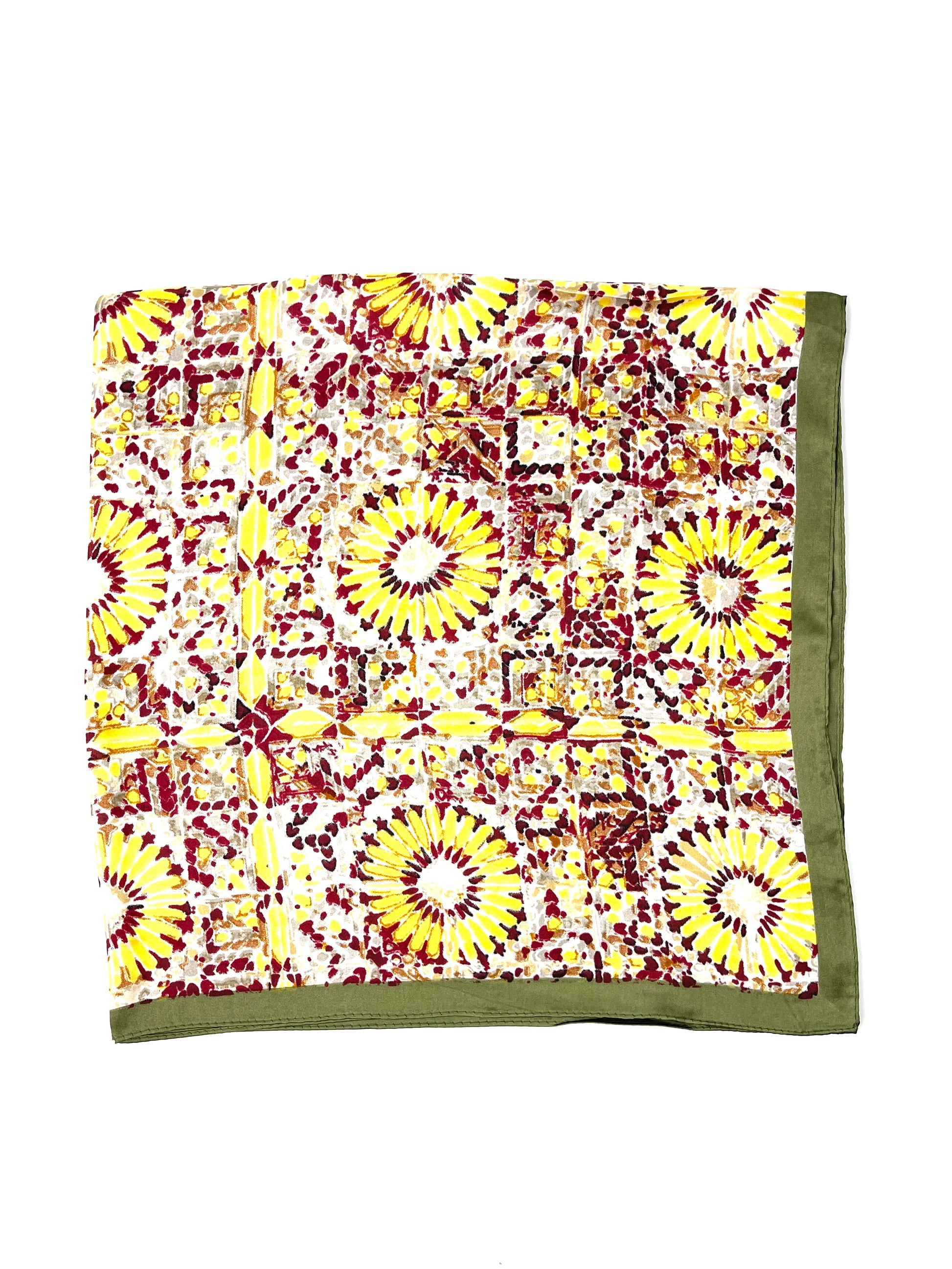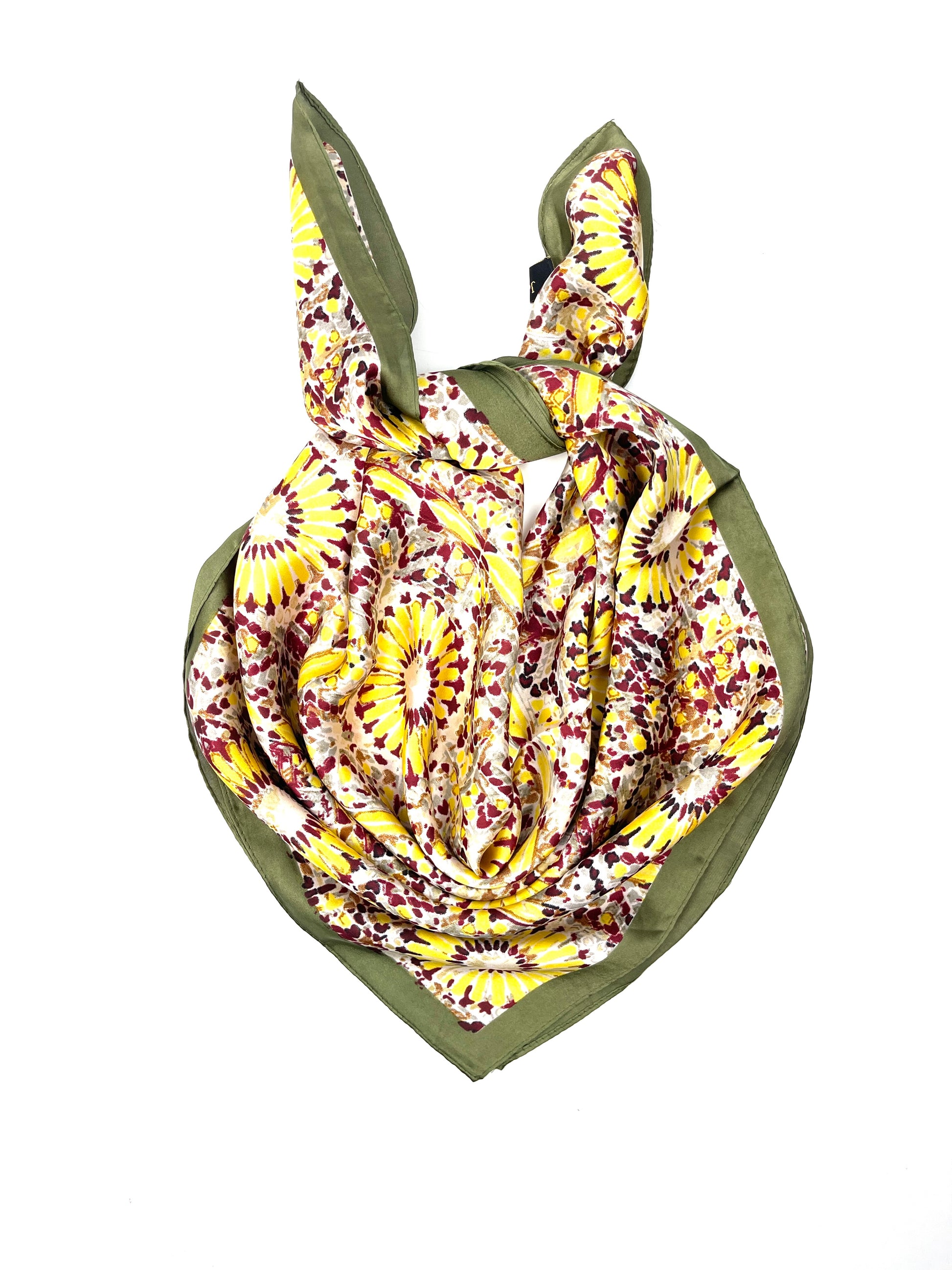 Élégance et fraîcheur s'unissent dans ce foulard carré en polyester. Confectionné dans un polyester de très haute qualité, il offre un toucher doux et agréable, tout en conservant une brillance subtile et une excellente durabilité.